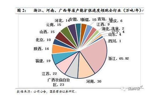 就目前已經(jīng)投產(chǎn)的項(xiàng)目中,紅獅水泥合計(jì)投產(chǎn)規(guī)模50.5萬噸(市占率18%)、海螺創(chuàng)業(yè)投產(chǎn)規(guī)模44.36萬噸(市占率16%)、金隅集團(tuán)投產(chǎn)規(guī)模22萬噸(市占率8%)和金圓股份投產(chǎn)21.42萬噸(市占率8%),四家公司累計(jì)市占率達(dá)到50%。同時(shí)根據(jù)我們對(duì)各公司已經(jīng)處于環(huán)評(píng)或建設(shè)狀態(tài)的項(xiàng)目跟蹤,產(chǎn)能將在2019年進(jìn)一步釋放,龍頭優(yōu)勢(shì)有望進(jìn)一步夯實(shí)。