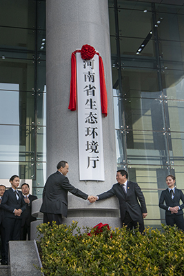 河南省政府副秘書長(zhǎng)馮先志、省生態(tài)環(huán)境廳領(lǐng)導(dǎo)班子成員、歷屆離任廳級(jí)領(lǐng)導(dǎo)代表、省政府參事及離退休老干部代表、省生態(tài)環(huán)境廳全體干部職工參加儀式,共同見證了這一我省生態(tài)環(huán)境保護(hù)史上具有里程碑意義的重要時(shí)刻。