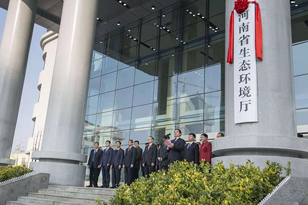 11月26日,新組建的河南省生態(tài)環(huán)境廳正式揭牌成立,該省生態(tài)環(huán)境保護(hù)工作掀開新篇章。上午10時(shí)許,在鄭州市鄭東新區(qū)學(xué)理路10號(hào)的新址辦公樓前,隆重舉行了升國(guó)旗及揭牌儀式。河南省委常委、省政府常務(wù)副省長(zhǎng)黃強(qiáng)出席并為河南省生態(tài)環(huán)境廳揭牌。