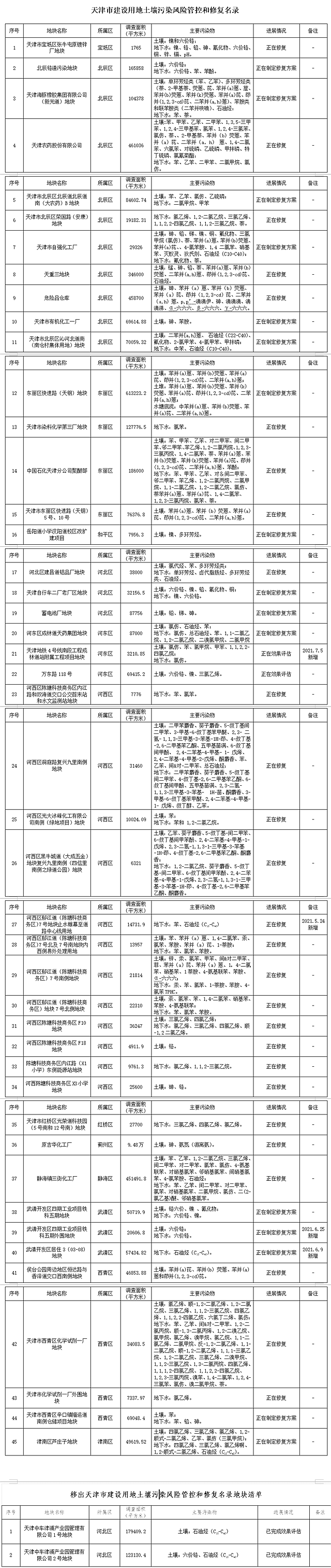 市生態(tài)環(huán)境局 市規(guī)劃資源局關(guān)于更新發(fā)布《天津市建設(shè)用地土壤污染 風(fēng)險(xiǎn)管控和修復(fù)名錄》的通知各區(qū)生態(tài)環(huán)境局、規(guī)劃資源分局: 為貫徹落實(shí)《中華人民共和國土壤污染防治法》、《天津市土壤污染防治條例》,加強(qiáng)我市建設(shè)用地土壤環(huán)境管理,實(shí)行建設(shè)用地土壤污染風(fēng)險(xiǎn)管控和修復(fù)名錄制度,根據(jù)我市建設(shè)用地地塊風(fēng)險(xiǎn)評(píng)估和治...