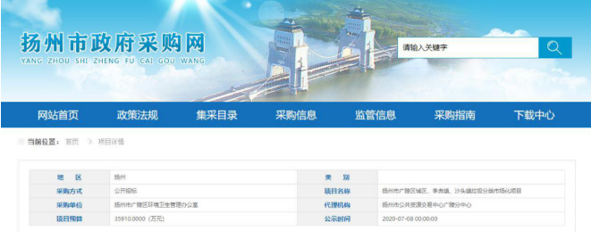 7月8日揚(yáng)州市政府采購(gòu)網(wǎng)公布了關(guān)于揚(yáng)州市廣陵區(qū)城區(qū)、李典鎮(zhèn)、沙頭鎮(zhèn)垃圾分類市場(chǎng)化項(xiàng)目中標(biāo)公告,中標(biāo)企業(yè)為江蘇海沃潤(rùn)揚(yáng)環(huán)境科技有限公司。 該項(xiàng)目中標(biāo)金額為3986.59萬元/年,項(xiàng)目期限為九年,合同一年一簽,合計(jì)中標(biāo)金額達(dá)3.58億元。目前,此項(xiàng)目在已發(fā)布的垃圾分類項(xiàng)目中,堪稱是2020年國(guó)內(nèi)垃圾分類...