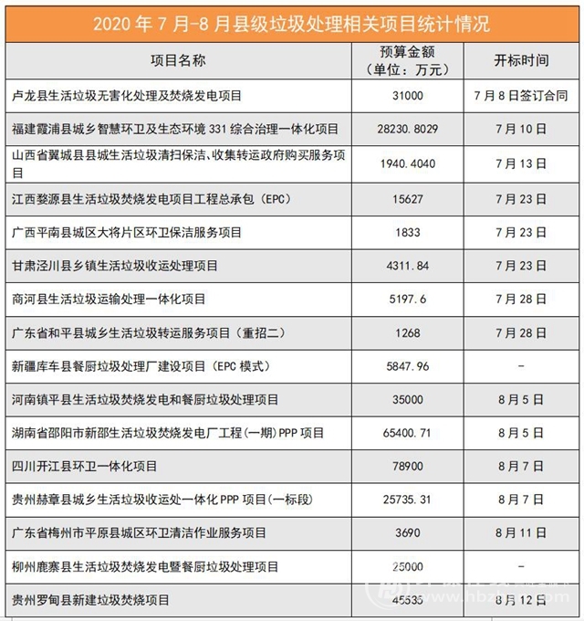 進(jìn)入2020年7月以來,各地縣級(jí)垃圾處理相關(guān)項(xiàng)目不斷釋放。根據(jù)環(huán)保在線不完全統(tǒng)計(jì),截止到目前,僅一個(gè)月我國(guó)已有16個(gè)項(xiàng)目開始招標(biāo)或已經(jīng)公布結(jié)果,投資金額達(dá)37.4518億元。具體如下: (數(shù)據(jù)統(tǒng)計(jì)至2020年7月28日,如有疏漏,歡迎補(bǔ)充。) 從上述來看,我國(guó)縣級(jí)生活垃圾處理和環(huán)衛(wèi)市場(chǎng)或?qū)⒂瓉肀l(fā)期...