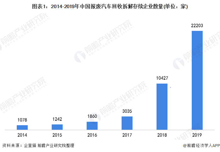 回收拆解企業(yè)數(shù)量猛增 近兩年,我國報廢汽車回收拆解存續(xù)企業(yè)數(shù)量猛增。據(jù)企查貓數(shù)據(jù)顯示,2019年,我國報廢汽車回收拆解存續(xù)企業(yè)數(shù)量共22203家,較2018年大幅增長。 2015-2019年,我國報廢機(jī)動車回收數(shù)量波動變化。據(jù)商務(wù)部市場體系建設(shè)司統(tǒng)計數(shù)據(jù)顯示,2019年,我國報廢機(jī)動車回收數(shù)量達(dá)22...