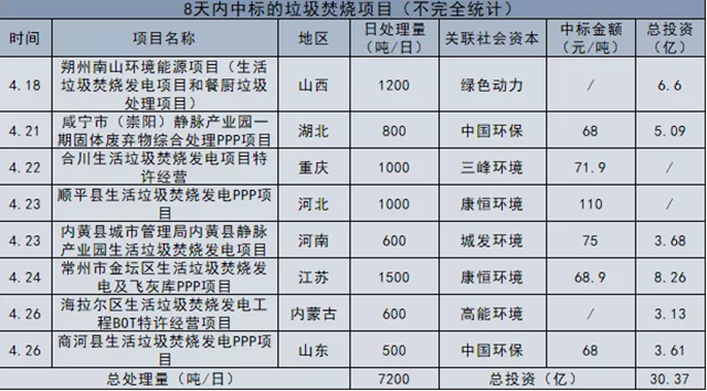 八天內(nèi),超30億垃圾焚燒項(xiàng)目落入六大名企手中