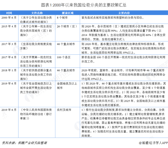 2019年全國及重點城市垃圾分類行業(yè)政策匯總及解讀