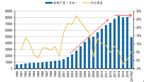 1、回收期疊加產(chǎn)能出清,供給進(jìn)入快速增長(zhǎng)軌道粗鋼產(chǎn)量達(dá)到頂峰,增長(zhǎng)面臨停滯。21世紀(jì)以來(lái),伴隨著工業(yè)化和城市化進(jìn)程的加速,我國(guó)鋼鐵工業(yè)持續(xù)高速發(fā)展,2000-2013年鋼鐵產(chǎn)量的平均增長(zhǎng)速度高達(dá)14.2%,而世界平均水平僅5.2%。2014年,我國(guó)粗鋼產(chǎn)量達(dá)到峰值8.23億噸。其后的2015-201...