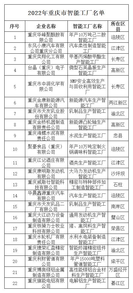 22+160!重慶市公布2022年智能工廠和數(shù)字化車(chē)間名單