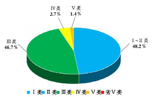 2021年1-7月,全省主要流域“十四五”375個評價斷面總體水質(zhì)為優(yōu),Ⅰ~Ⅱ類水質(zhì)比例為48.2%,Ⅰ~Ⅲ類水質(zhì)比例為94.9%,其中,143個原“十三五”評價斷面Ⅰ~Ⅲ類水質(zhì)比例為97.8%,按可比口徑持平。各類水質(zhì)比例如下:Ⅰ類占2.1%,Ⅱ類占46.1%,Ⅲ類占46.7%,Ⅳ類占3.7%,Ⅴ...