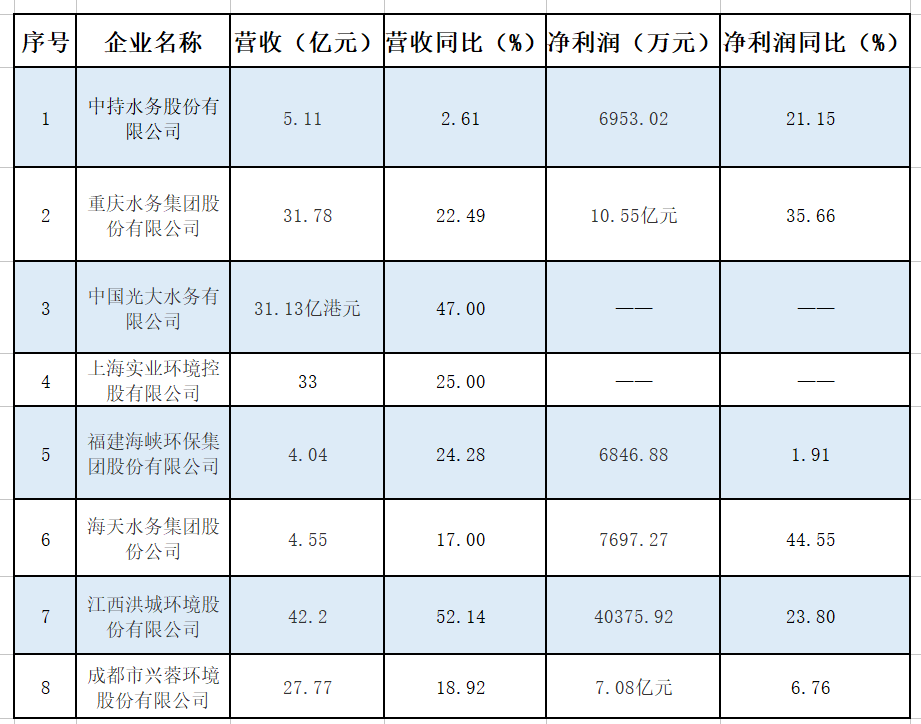 2021年上半年已然過(guò)去,目前,已陸陸續(xù)續(xù)有環(huán)保上市企業(yè)發(fā)布2021年上半年業(yè)績(jī)報(bào)告了,接下來(lái)小編將通過(guò)營(yíng)收、營(yíng)收增速、凈利潤(rùn)、凈利潤(rùn)增幅等幾方面,來(lái)為讀者盤點(diǎn)八家環(huán)保上市企業(yè)上半年的盈虧情況。 一、中持水務(wù)股份有限公司 上半年實(shí)現(xiàn)營(yíng)業(yè)收入約5.11億元,同比增長(zhǎng)2.61%;歸屬于上市公司股東的凈利...