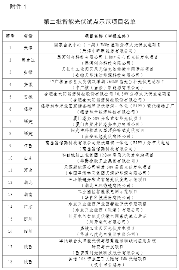 第二批智能光伏試點(diǎn)示范名單公示 為貫徹落實(shí)《智能光伏產(chǎn)業(yè)發(fā)展行動(dòng)計(jì)劃(2018-2020年)》(工信部聯(lián)電子〔2018〕68號(hào)),根據(jù)《工業(yè)和信息化部辦公廳住房和城鄉(xiāng)建設(shè)部辦公廳交通運(yùn)輸部辦公廳農(nóng)業(yè)農(nóng)村部辦公廳 國(guó)家能源局綜合司 國(guó)家鄉(xiāng)村振興局綜合司 關(guān)于開(kāi)展第二批智能光伏試點(diǎn)示范的通知》(工信廳聯(lián)...
