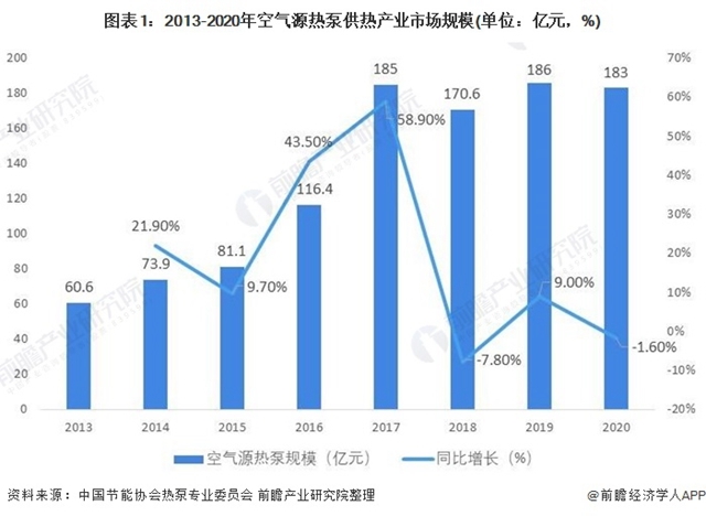 空氣源熱泵供熱產(chǎn)業(yè)是采用空氣源熱泵技術,利用空氣熱能,實現(xiàn)供熱應用的相關企事業(yè)單位和行業(yè)的集合。產(chǎn)品實現(xiàn)了空氣熱能這一可再生能源的有效利用,替代了傳統(tǒng)的燃氣、燃油和燃煤設備,相對于其他熱力設備節(jié)能效果顯著,運行中沒有任何污染排放,是值得大力開發(fā)和推廣利用的綠色環(huán)保設備。 2020年整體受疫情影響較小...