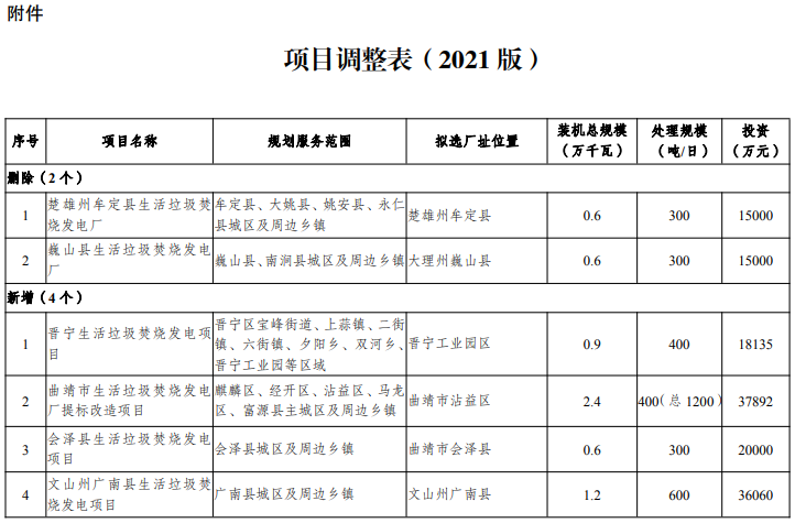 各州(市)發(fā)展改革委、住房城鄉(xiāng)建設(shè)局(環(huán)衛(wèi)主管部門)、能源局、生態(tài)環(huán)境局、自然資源局: 為統(tǒng)籌推進(jìn)全省生活垃圾焚燒處理設(shè)施建設(shè)工作,按照《云南省生活垃圾焚燒發(fā)電中長(zhǎng)期專項(xiàng)規(guī)劃(2019-2030年)》(以下簡(jiǎn)稱《規(guī)劃》)要求,根據(jù)項(xiàng)目進(jìn)展和實(shí)際情況,每年對(duì)《規(guī)劃》實(shí)行動(dòng)態(tài)調(diào)整?,F(xiàn)將調(diào)整的《規(guī)劃》項(xiàng)目...