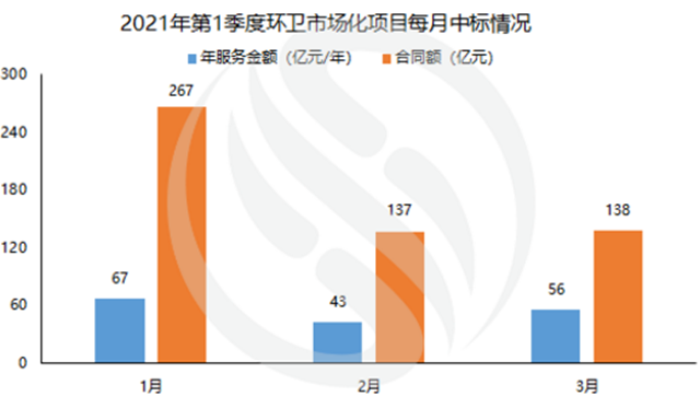 內(nèi)容概覽: E20研究院數(shù)據(jù)中心對2021年第1季度環(huán)衛(wèi)市場進行盤點: (1)第1季度環(huán)衛(wèi)市場表現(xiàn):據(jù)E標通獲悉,2021年第1季度新增年服約166億元,新增合同額約541億元,成績再創(chuàng)新高;從服務模式看,2021年第1季度環(huán)衛(wèi)市場化PPP項目占比降至3.03%,同比下降5.79%;華東、華南、華中...