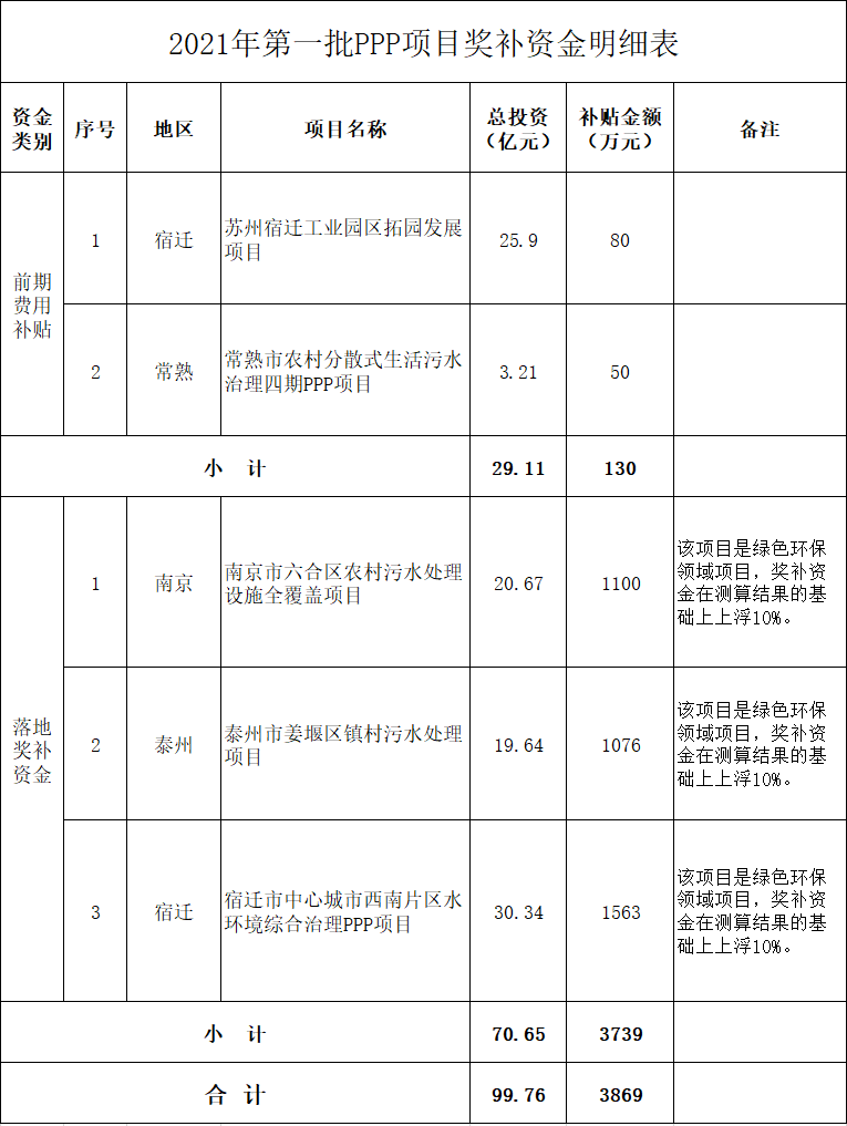 關(guān)于下達(dá)2021年第一批PPP項目獎補資金的通知蘇財金〔2021〕33號 南京、泰州、宿遷、常熟市財政局: 為貫徹落實《省政府關(guān)于在公共服務(wù)領(lǐng)域推廣政府和社會資本合作模式的實施意見》(蘇政發(fā)〔2015〕101號)精神,進一步高質(zhì)量推動我省政府和社會資本合作(PPP)工作開展,根據(jù)江蘇省財政廳《政府和...