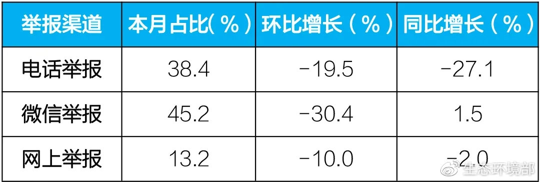 一、全國舉報量環(huán)比、同比均有所下降 2020年12月,全國“12369環(huán)保舉報聯(lián)網(wǎng)管理平臺”(以下簡稱“聯(lián)網(wǎng)平臺”)共接到環(huán)保舉報31156件,環(huán)比下降23.2%,同比下降10.3%。本月接到的舉報中,受理23792件,因舉報線索不詳或不屬于生態(tài)環(huán)境部...