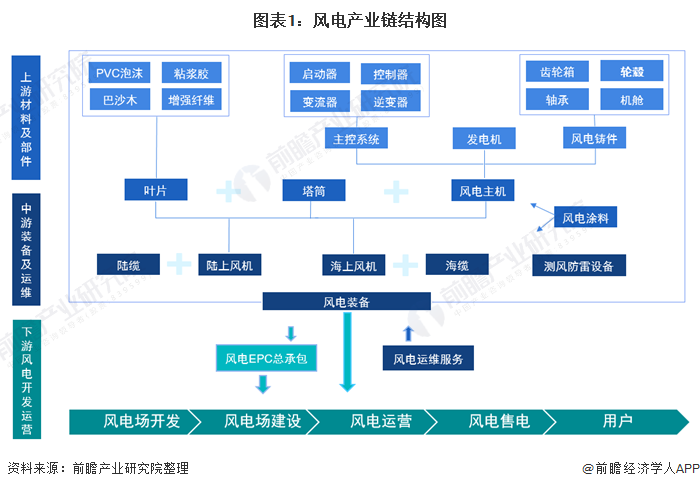 風電產(chǎn)業(yè)鏈分為上游材料及零部件、中游風機整機及運維、下游風電開發(fā)運營。上游風機部件中的葉片是產(chǎn)業(yè)鏈中供應最緊張的環(huán)節(jié),風電葉片的關鍵材料巴沙木和PVC泡沫依賴進口。目前,風電產(chǎn)業(yè)鏈代表企業(yè)主要集中在江蘇、北京、上海、山東等地區(qū),其中,江蘇風電產(chǎn)業(yè)發(fā)展領先。 風電產(chǎn)業(yè)鏈全景梳理:核心原材料供應緊張 風...