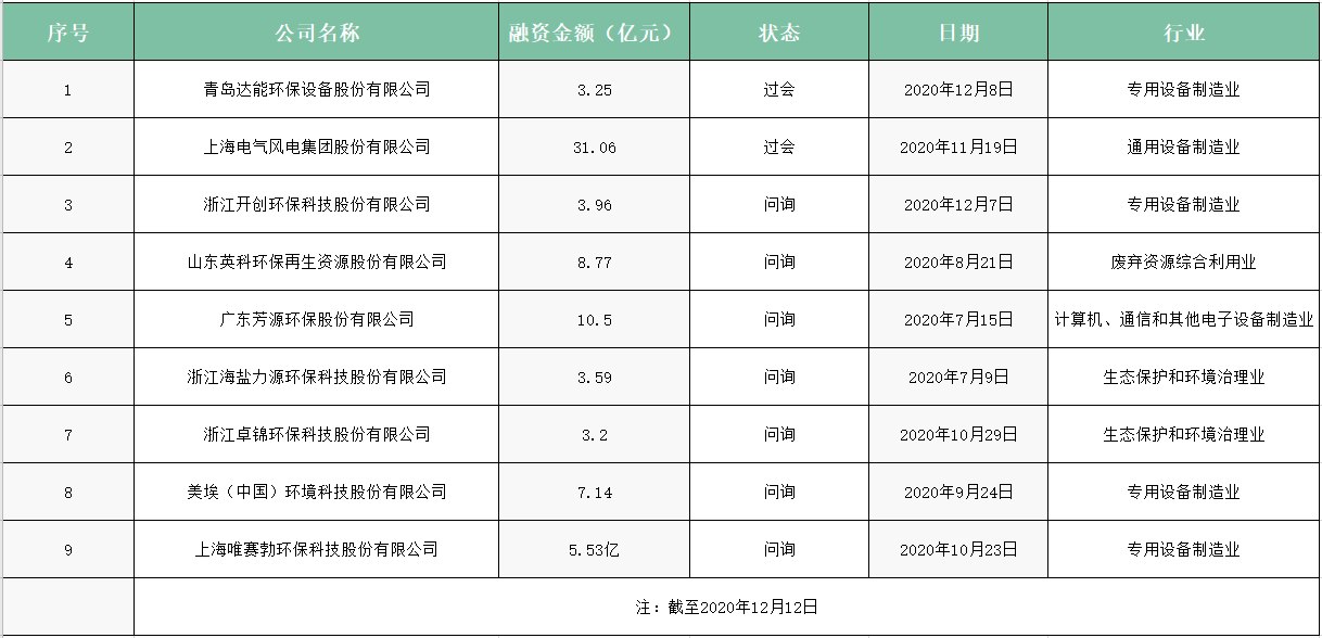 青達(dá)環(huán)保——過(guò)會(huì) 2020年12月8日,青島達(dá)能環(huán)保設(shè)備股份有限公司科創(chuàng)板上市申請(qǐng)已通過(guò)。 融資金額:3.25億元 注冊(cè)時(shí)間為2006年,注冊(cè)資本為7100萬(wàn)元,目前有3家控股子公司和1家參股公司——青島達(dá)能能源科技有限公司、北京清遠(yuǎn)順合環(huán)??萍加邢薰?..