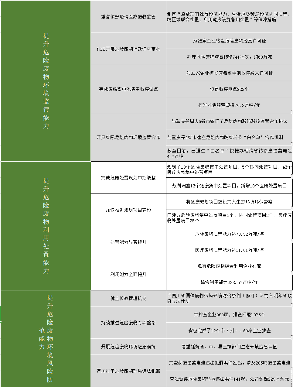 2020年12月15日,四川省生態(tài)環(huán)境廳召開新聞發(fā)布會(huì),通報(bào)危險(xiǎn)廢物環(huán)境管理工作有關(guān)情況。 現(xiàn)場(chǎng)提問(wèn)匯總: 1、簡(jiǎn)單介紹醫(yī)療廢物在線監(jiān)管平臺(tái) 2、審批危險(xiǎn)廢棄物處置項(xiàng)目應(yīng)具備什么條件?中央預(yù)算內(nèi)資金對(duì)該類項(xiàng)目有支持嗎? 3、在提升危險(xiǎn)廢物環(huán)境風(fēng)險(xiǎn)聯(lián)防聯(lián)控機(jī)制方面開展了哪些工作,成效如何? 4、怎樣確...