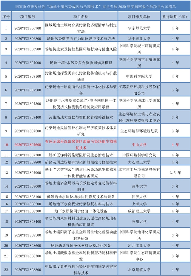近日,科技部公布了2020年國家重點研發(fā)計劃“場地土壤污染成因與治理技術(shù)”重點專項立項結(jié)果,由航天凱天環(huán)保聯(lián)合中山大學、中國地質(zhì)大學、中南大學、湖南大學、中科院地球化學研究所等10家單位聯(lián)合申報的“有色金屬采選冶聚集區(qū)遺留污染場地生物修復技術(shù)(項目編號:2020Y...