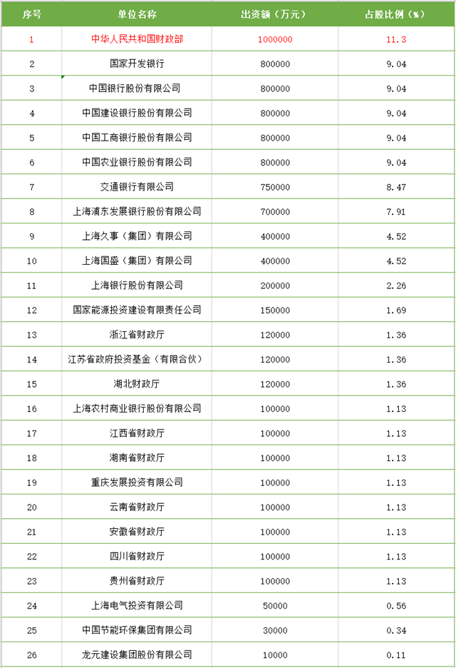 885億元!國家綠色發(fā)展基金股份有限公司在上海揭牌運營,由財政部、生態(tài)環(huán)境部、上海市共同發(fā)起設(shè)立。此次募集資金中,財政部出資100億元,占股11.3%,長江沿線11個省市、部分金融機構(gòu)和相關(guān)行業(yè)企業(yè)也參與其中。 2019年生態(tài)環(huán)境部就曾透露,國家綠色發(fā)展基金2020年將正式啟動運營。 據(jù)國家綠色發(fā)展...
