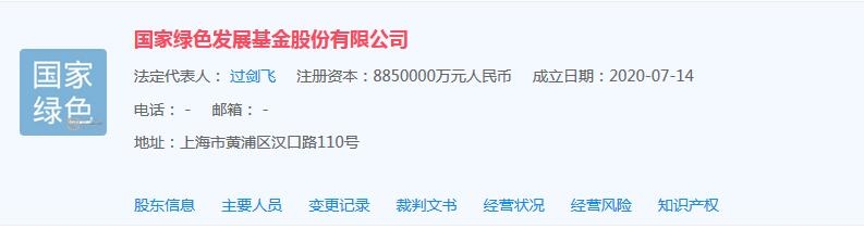 天眼查數(shù)據(jù)顯示,7月14日,國家綠色發(fā)展基金股份有限公司成立,注冊地址為上海市黃浦區(qū)漢口路110號,注冊資本885億人民幣,法定代表人為過劍飛,公司經(jīng)營范圍包括一般項目:股權(quán)投資,項目投資,投資管理,投資咨詢,(除依法須經(jīng)批準的項目外,憑營業(yè)執(zhí)照依法自主開展經(jīng)營活動)等?!鴣碓雌蟛椴?天眼查數(shù)據(jù)顯示...