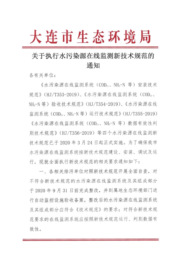 為了確保我市水污染源在線監(jiān)測系統(tǒng)按新技術(shù)規(guī)范建設(shè)、安裝、調(diào)試及運(yùn)行,現(xiàn)就全面執(zhí)行新技術(shù)規(guī)范的相關(guān)要求通知如下: 相關(guān)資料下載:關(guān)于執(zhí)行水污染源在線監(jiān)測新技術(shù)規(guī)范的通知.pdf