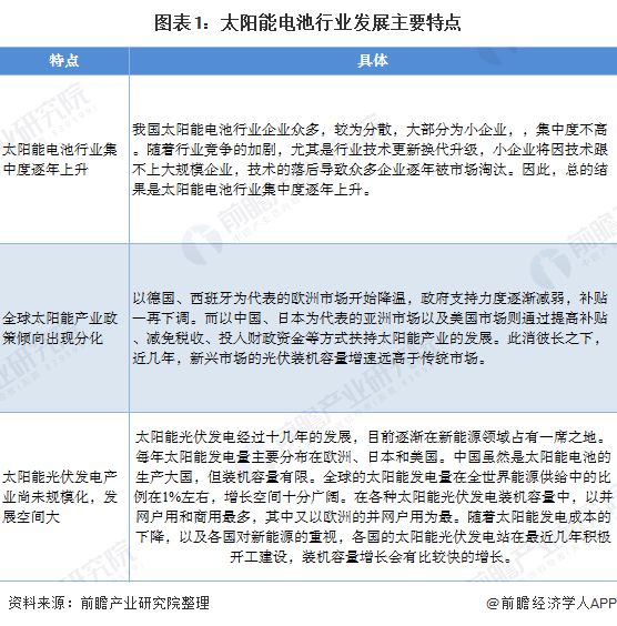 太陽能電池行業(yè)近年來在相關(guān)政策的扶持下迅速發(fā)展,行業(yè)集中度不斷上升,具有較大的發(fā)展空間。 產(chǎn)量增速突破30% 太陽能電池又稱為“太陽能芯片”或“光電池”,是一種利用太陽光直接發(fā)電的光電半導(dǎo)體薄片。它只要被滿足一定照度條件的光照到,瞬間就可輸出電壓及在有...