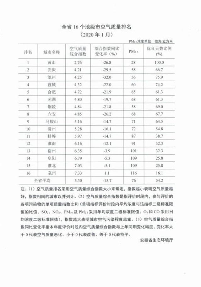 為貫徹落實(shí)國(guó)務(wù)院《大氣污染防治行動(dòng)計(jì)劃》、《安徽省打贏藍(lán)天保衛(wèi)戰(zhàn)三年行動(dòng)計(jì)劃實(shí)施方案》有關(guān)要求,加強(qiáng)信息公開和社會(huì)監(jiān)督,推動(dòng)城市空氣質(zhì)量改善,按照原環(huán)保部統(tǒng)一部署及省生態(tài)環(huán)境廳工作要求,近日,省生態(tài)環(huán)境監(jiān)測(cè)中心按期完成全省16個(gè)地級(jí)市空氣質(zhì)量排名(2020年1月)編制發(fā)布工作。 全省16個(gè)地級(jí)市空氣...