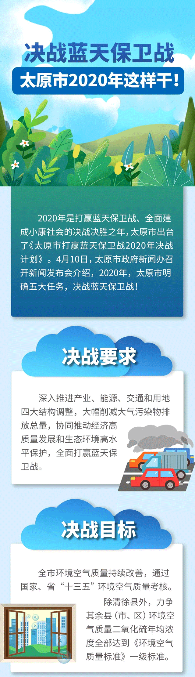 2020年是打贏藍天保衛(wèi)戰(zhàn)、全面建成小康社會的決戰(zhàn)決勝之年,太原市出臺了《太原市打贏藍天保衛(wèi)戰(zhàn)2020年決戰(zhàn)計劃》。4月10日,太原市政府新聞辦召開新聞發(fā)布會介紹,2020年,太原市明確五大任務(wù),決戰(zhàn)藍天保衛(wèi)戰(zhàn)!