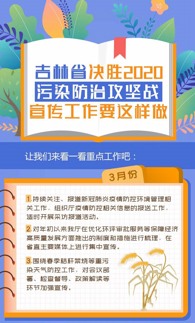 2020年是全面建成小康社會的收官之年,也是污染防治攻堅戰(zhàn)的決戰(zhàn)決勝之年。為全面加強生態(tài)環(huán)境保護宣傳工作,為決勝污染防治攻堅戰(zhàn)提供有力支撐,吉林省生態(tài)環(huán)境廳出臺了《決勝2020污染防治攻堅戰(zhàn)宣傳工作計劃》(吉環(huán)宣字〔2020〕3號,以下簡稱《工作計劃》),圍繞年度攻堅決勝階段重點任務強化宣傳保障措施...