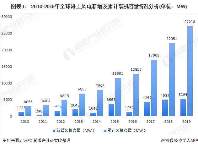 2019全球海上風(fēng)電累計(jì)裝機(jī)容量達(dá)27.2GW 根據(jù)世界海上風(fēng)電論壇(WFO)發(fā)布的數(shù)據(jù)顯示,2019年,全球共新建海上風(fēng)電場(chǎng)16個(gè)并投入運(yùn)行,共新增裝機(jī)容量5.2GW;主要分布在中國(guó)、英國(guó)、德國(guó)、丹麥、比利時(shí)、臺(tái)灣地區(qū)。截至2019年底,全球已投運(yùn)海上風(fēng)電場(chǎng)共有146個(gè),累計(jì)裝機(jī)容量達(dá)到27.2G...