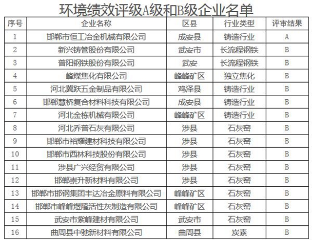 日前,邯鄲公布重污染天氣應(yīng)急減排清單部省重點(diǎn)行業(yè)A級(jí)和B級(jí)企業(yè)名單,共16家企業(yè),其中A級(jí)一家,B級(jí)15家。 重污染天氣應(yīng)急減排清單部省重點(diǎn)行業(yè)A級(jí)和B級(jí)企業(yè)名單 根據(jù)生態(tài)環(huán)境部《關(guān)于加強(qiáng)重污染天氣應(yīng)對(duì)夯實(shí)應(yīng)急減排措施的指導(dǎo)意見》(環(huán)大氣函〔2019〕648號(hào))和省生態(tài)環(huán)境廳有關(guān)要求,對(duì)納入《邯鄲市...