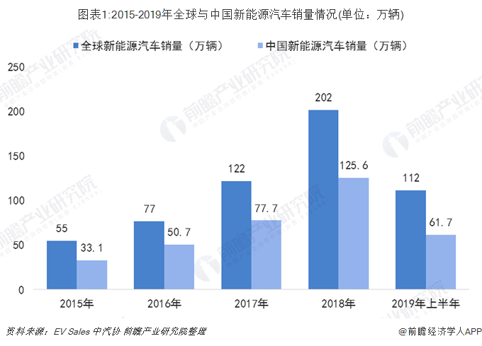 中國新能源汽車銷量逆勢增長 全球占比約55% 在汽車銷量下行的大環(huán)境下,中國新能源汽車銷量逆勢增長,2015-2018年中國新能源汽車銷量持續(xù)增長,2018年中國新能源汽車銷量為125.6萬臺(tái),較2017年增長61.7%,2019年上半年全球新能源汽車銷量達(dá)112萬臺(tái),其中中國新能源汽車銷量達(dá)61....