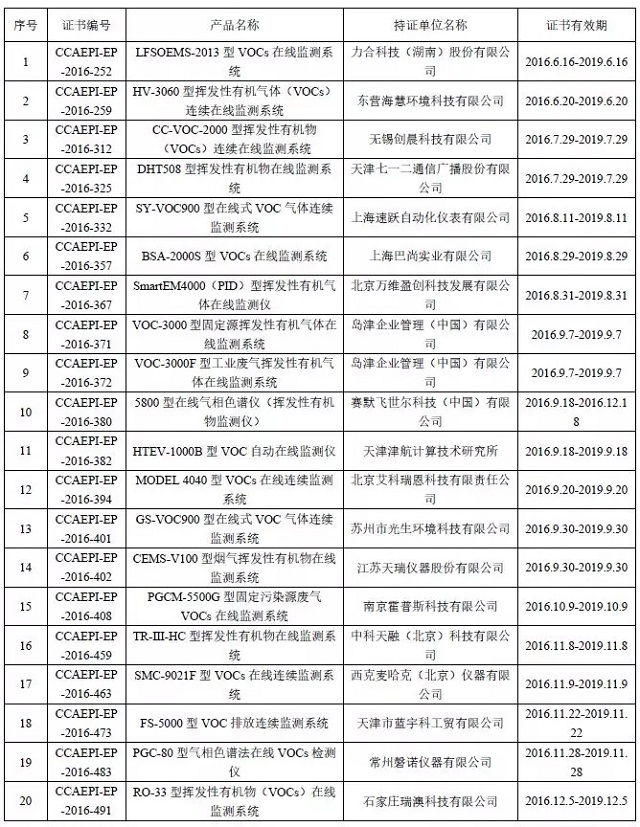 環(huán)境監(jiān)測儀器設(shè)備環(huán)保產(chǎn)品認(rèn)證獲證單位名錄(七)