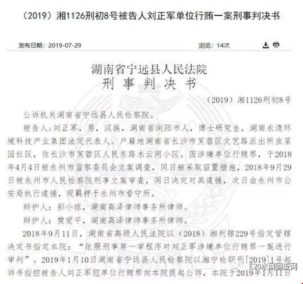 近日,裁判文書網(wǎng)顯示,永清環(huán)保實控人、原董事長、總經(jīng)理劉正軍受賄一案刑事判決書被公布。劉正軍因2013年至2016年期間,為永清集團及下屬公司謀取不正當利益,用永清集團資金送給時任湖南省政府辦副主任王華平人民幣155萬、港幣20萬元、美元1萬元,以單位行賄罪被判處有期徒刑1年3個月,并處罰金20萬。...