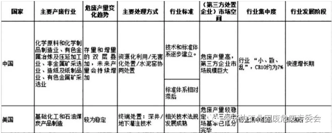 我國危廢行業(yè)起步較晚,在政策方面可參照發(fā)達(dá)國家完善的行業(yè)標(biāo)準(zhǔn)和技術(shù)規(guī)范,減少走彎路的時間。但中美兩國危廢行業(yè)有較大不同,包括產(chǎn)廢行業(yè)、主要處理方式、發(fā)展階段、第三方市場空間等都有較大差別。中國與美國危廢行業(yè)具體對比如下表所示。主要產(chǎn)廢行業(yè)以及危廢產(chǎn)生量美國危廢產(chǎn)生來源較窄,主要集中在基礎(chǔ)化工和石 油...