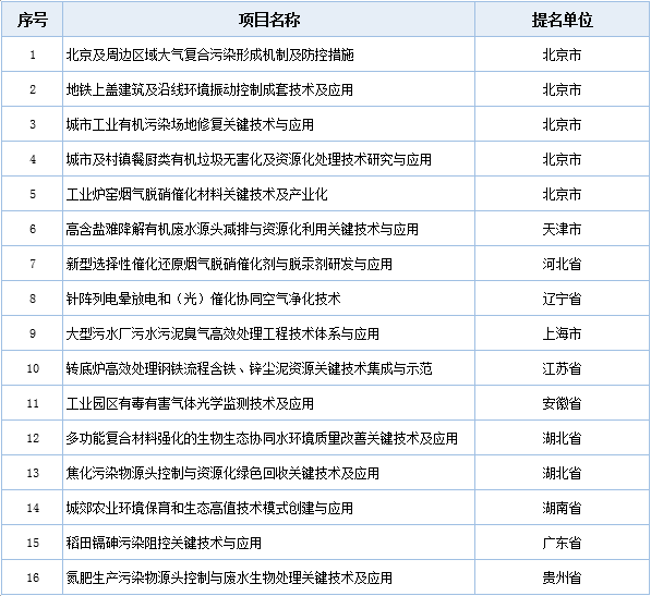 2019年度國家自然科學(xué)獎受理項目目錄(環(huán)境保護組)