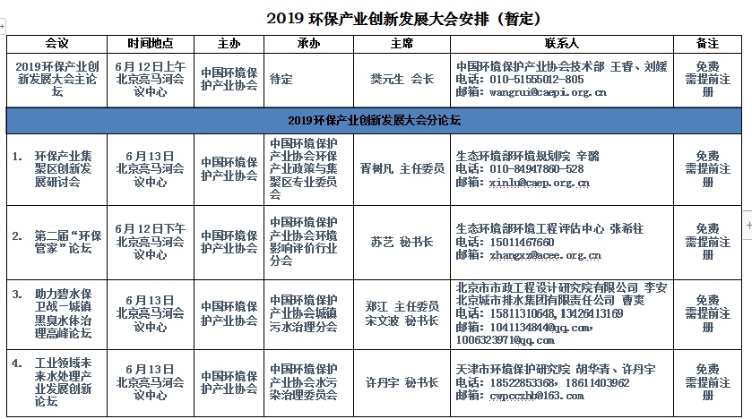 為深入貫徹落實(shí)習(xí)近平生態(tài)文明思想和綠色發(fā)展理念,促進(jìn)國(guó)內(nèi)外環(huán)保產(chǎn)業(yè)界的交流和合作,中國(guó)環(huán)保產(chǎn)業(yè)協(xié)會(huì)會(huì)將于2019年6月在京舉辦“2019環(huán)保產(chǎn)業(yè)創(chuàng)新發(fā)展大會(huì)”。大會(huì)主題為“高質(zhì)量發(fā)展環(huán)保產(chǎn)業(yè),助力打好污染防治攻堅(jiān)戰(zhàn)”,設(shè)主論壇和20余個(gè)平行分論壇,擬邀請(qǐng)生態(tài)環(huán)境部、發(fā)改委、科技部、工信部、住建部等政...