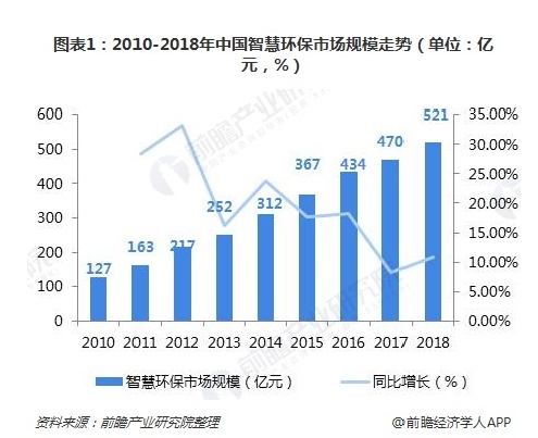 在“十三五”的環(huán)保政策熱潮以及ICT技術成熟背景下,我國智慧環(huán)保行業(yè)發(fā)展迅速,據(jù)測算,2018年行業(yè)規(guī)模為521億元,同比增長10.91%,2010-2018年行業(yè)復合增速達到19.31%。 一、市場規(guī)模:政策熱潮和技術發(fā)展雙催動,智慧環(huán)保市場增長空間大 “十三五...