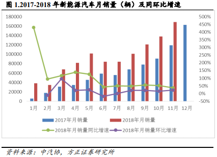 11 月中汽協(xié)數(shù)據(jù)公布,新能源汽車產(chǎn)銷量分別為17.3 萬輛和16.9 萬輛,同比增長分別為 36.9%和 37.6%。新能源乘用車銷量為 14 萬輛,其中純電動乘用車 10.9 萬輛,插電式混合動力乘用車 3.1 萬輛;新能源商用車的銷量為 3 萬輛,純電動商用車銷售 2.9 萬輛。2018 年 ...