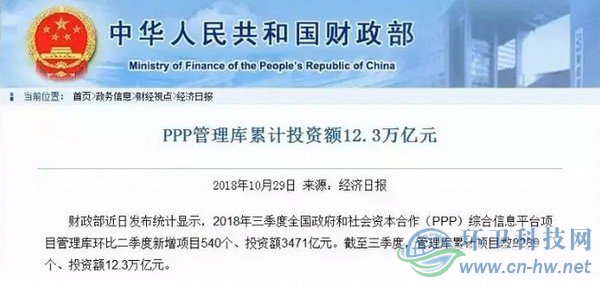 財(cái)政部近日發(fā)布統(tǒng)計(jì)顯示,2018年三季度全國政府和社會(huì)資本合作(PPP)綜合信息平臺(tái)項(xiàng)目管理庫環(huán)比二季度新增項(xiàng)目540個(gè)、投資額3471億元。截至三季度,管理庫累計(jì)項(xiàng)目數(shù)8289個(gè)、投資額12.3萬億元。 財(cái)政部PPP中心介紹,各地繼續(xù)加強(qiáng)PPP項(xiàng)目規(guī)范發(fā)展,持續(xù)清理不合規(guī)項(xiàng)目。三季度管理庫共清退項(xiàng)...