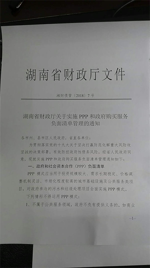 2017年年末,《關(guān)于規(guī)范政府和社會(huì)資本合作(PPP)綜合信息平臺(tái)項(xiàng)目庫管理的通知》》(財(cái)辦金〔2017〕92號(hào))及《關(guān)于加強(qiáng)中央企業(yè)PPP業(yè)務(wù)風(fēng)險(xiǎn)管控的通知》(國資發(fā)財(cái)管〔2017〕192號(hào))等系列政策文件出臺(tái),業(yè)界解讀認(rèn)為PPP進(jìn)入從起飛轉(zhuǎn)向平飛的新階段。PPP運(yùn)營受到高度關(guān)注。近日網(wǎng)傳湖南省財(cái)...