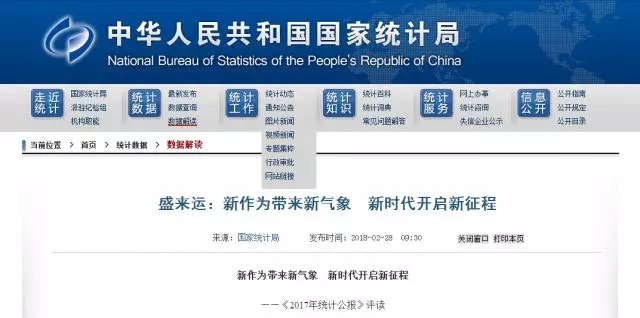 國家統(tǒng)計局網(wǎng)站28日公布《2017年國民經(jīng)濟和社會發(fā)展統(tǒng)計公報》,筆筆數(shù)據(jù)記錄了全國各族人民拼搏奮進(jìn)的累累碩果,張張圖表展示了黨的十八大以來我國發(fā)展取得的歷史性成就、發(fā)生的歷史性變革。為幫助讀者更好地理解公報的豐富內(nèi)涵,國家統(tǒng)計局黨組成員、總經(jīng)濟師盛來運發(fā)表了題為《新作為帶來新氣象 新時代開啟新征程...