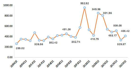 一、浙江省排污權(quán)交易指數(shù)分析 2022年第一季度,浙江省排污權(quán)交易指數(shù)呈上升趨勢,在上年第四季度的329.37點基礎(chǔ)上回升至408.42點,環(huán)比上漲24.00%,同比下跌24.08%。 圖 1 浙江省排污權(quán)交易指數(shù) 四項排污權(quán)指標(biāo):化學(xué)需氧量收報于546.22點(對應(yīng)價格21848.62元/噸&mi...