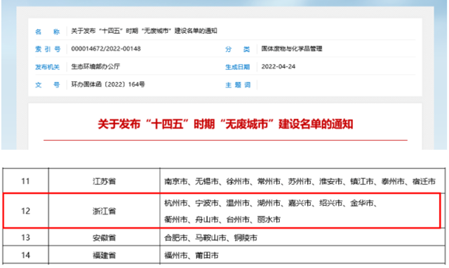 “無(wú)廢城市”是以新發(fā)展理念為引領(lǐng),通過推動(dòng)形成綠色發(fā)展方式和生活方式,持續(xù)推進(jìn)固體廢物源頭減量和資源化利用,最大限度減少填埋量,將固體廢物環(huán)境影響降至最低的城市發(fā)展模式。近日,生態(tài)環(huán)境部辦公廳公布“十四五”時(shí)期“無(wú)廢城市”建設(shè)名...