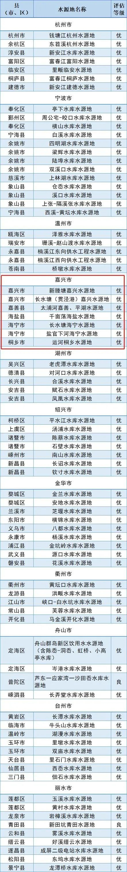 剛剛,省水利廳、省生態(tài)環(huán)境廳公布2021年度縣級(jí)以上集中式飲用水水源地安全保障達(dá)標(biāo)評(píng)估結(jié)果!全省79個(gè)縣級(jí)以上飲用水水源地中,錢塘江杭州水源地等77個(gè)縣級(jí)以上飲用水水源地等級(jí)獲優(yōu)(占比約97%),其中嘉興7個(gè)繼續(xù)保持全“優(yōu)”!分別是—— 飲用水安全事關(guān)...