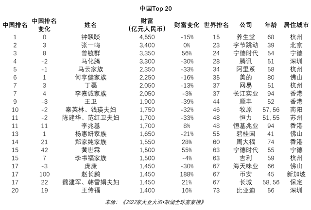 胡潤富豪榜:曾毓群進前三,比亞迪王傳福前進19位!新能源汽車勢力表現(xiàn)亮眼!