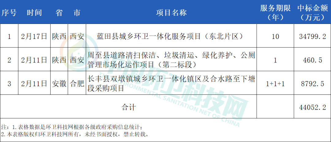 金沙田六天接連斬獲3個(gè)環(huán)衛(wèi)項(xiàng)目,總金額達(dá)4.41億元! 來(lái)源 |環(huán)衛(wèi)科技網(wǎng)作者 |王茜 環(huán)衛(wèi)科技網(wǎng)訊,金沙田六天接連斬獲3個(gè)環(huán)衛(wèi)項(xiàng)目,總金額達(dá)4.41億元! 藍(lán)田縣城鄉(xiāng)環(huán)衛(wèi)一體化服務(wù)項(xiàng)目 2月17日,陜西省政府采購(gòu)網(wǎng)發(fā)布藍(lán)田縣城鄉(xiāng)環(huán)衛(wèi)一體化服務(wù)項(xiàng)目的采購(gòu)結(jié)果公告。 金沙田中標(biāo)藍(lán)田縣城鄉(xiāng)環(huán)衛(wèi)一體化服務(wù)...