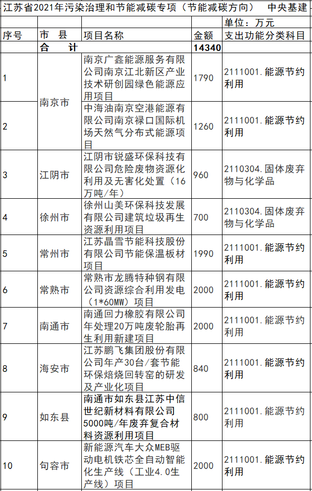 江蘇省財政廳關(guān)于下達(dá)2021年污染治理和節(jié)能減碳專項(節(jié)能減碳方向)中央基建投資預(yù)算(撥款)的通知 蘇財建〔2021〕126號 各有關(guān)市縣財政局: 根據(jù)《財政部關(guān)于下達(dá)2021年污染治理和節(jié)能減碳專項(節(jié)能減碳方向)中央基建投資預(yù)算(撥款)的通知》(財建〔2021〕287號)和《省發(fā)展改革委關(guān)于下達(dá)...