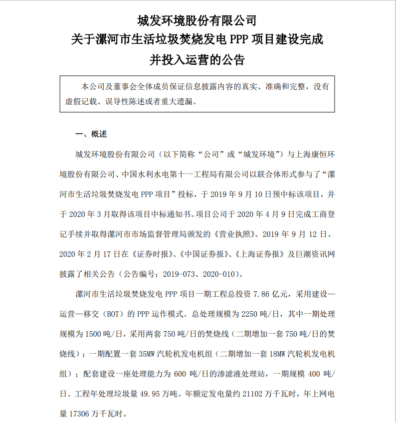 2021 年 11 月 10 日,漯河城發(fā)環(huán)保能源有限公司召開漯河市生活垃圾焚燒發(fā)電 項目啟動驗收委員會首次會議,機組進入整套啟動調試,#2 焚燒線于 11 月 24 日 15 點 30 分完成并汽操作。目前全部機組已完成“72+24”小時試運行,設備 運行穩(wěn)定,經濟指標良好...